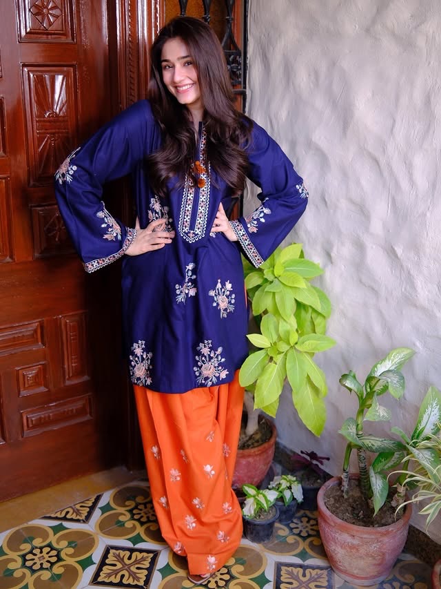 Refresh your wardrobe with this elegant 2-piece embroidered dress, beautifully crafted from soft and breathable cotton fabric. The outfit features a stylish embroidered shirt designed with delicate detailing that enhances its graceful and feminine appeal. It is paired with a trendy farshi shalwar, adding a traditional yet fashionable touch to the ensemble.